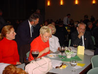 | Dan was het pauze en werd de grote jubileumtaart met flikkertjes de gedimde zaal rondgedragen en natuurlijk aangesneden en door iedereen likkebaardend geproefd. Traditioneel werden de shantykelen voor en na het optreden gesmeerd. |