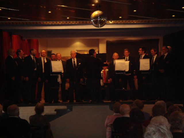 Ook in Lommel zong iedereen mee wanneer “De lichtjes van de Schelde, het Noordzee stand, My Bonny” en andere liedjes uit hun jeugd werden ingezet. Tussendoor wisselde het koor af met ritmische Shanties terwijl Gina, onze dirigente, de historische achtergrond er van vertelde. Voor iedereen werd het alom gekende lied “Zestien man ….” nog eens opgefrist en met het publiek in canon gezongen. Na afloop was er terecht applaus in beide richtingen. |